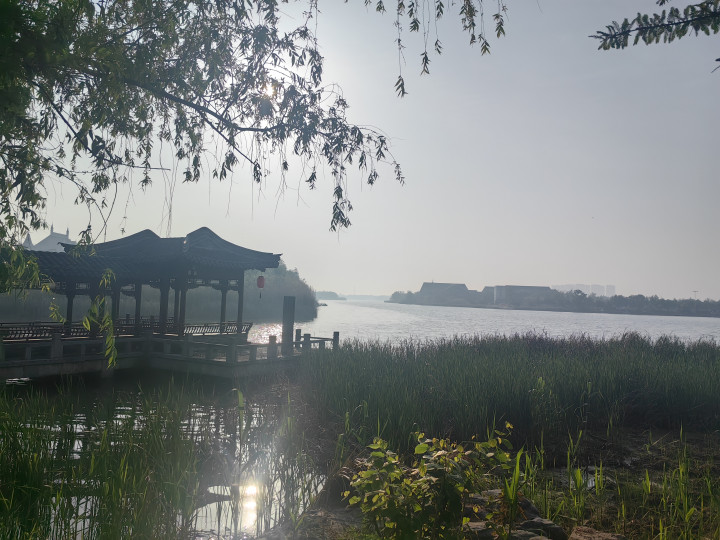 黎明,踏着微凉的朝阳溜达潘安湖畔,万物尚在初醒之中,周遭是贫苦的清寂。莫得尘凡的喧嚣,莫得车马的嘈杂,只好清风拂过耳畔,带着湖水的温润与草木的幽香,缓缓漫入心底,让急躁的想绪,在这晨间的宁静里缓缓千里淀。