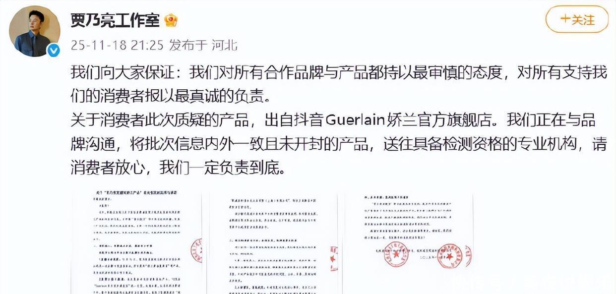 的确在合并时辰,娇兰品牌方也在贾乃亮抖音账号辩驳区留言复兴,已与奢华者获得疏通,诚邀其寄回商品进行专项走访,发愤给出省心的处置有蓄意 。 这场真伪之争的中枢世博shibo登录入口,终究需要一份无可争议的巨擘检测敷陈来驱逐。是奢华者维权属实,依然存在斥责诬陷?是品牌发货武艺出了莽撞,依然物流途中出现或然?公众期待贾乃亮方与娇兰品牌方约略尽快落实送检首肯,拿出透明化的走访效果,给奢华者一个明确薪金。