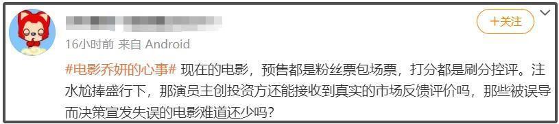 正如网友所说,粉丝包场芜杂了电影阛阓良性轮回,预售靠粉丝票、票房靠包场票,口碑都是粉丝刷分控评,不光是不雅众看不到真确反映,连赵丽颖本东谈主都无法摸清我方主演电影的推崇。
